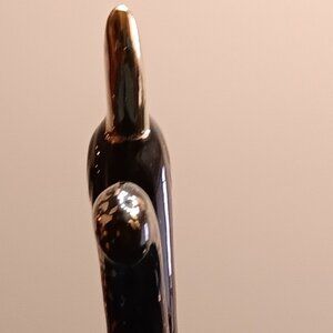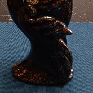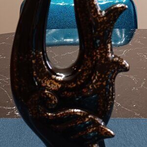 This lovely gold and black speckled rooster is 12.75" tall and was made in Japan. I believe it is hand painted by Atlas but lacks the sticker on the bottom to confirm that. However, it is identical to others that have the hand painted Atlas sticker. There are a few spots of minimal wear and a tiny scratch on the comb. Overall it is in fantastic shape. Please see photos.