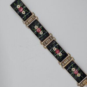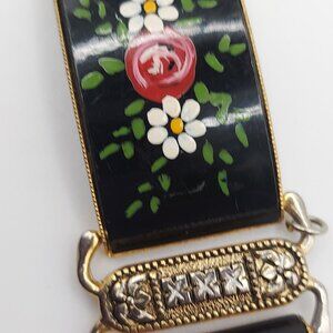 Vintage Hand Painted Floral Panel Bracelet Gold Tone Damascene Made in Spain