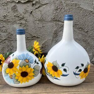 Vintage Hand Painted Sunflower Demijohn Vase Set