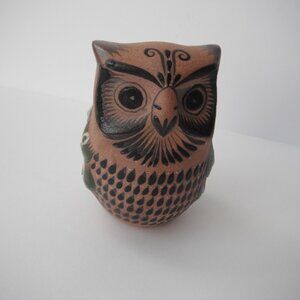Vintage Hand Painted Tonala Mexican Owl Bird Folk Art Sandstone Pottery Signed
