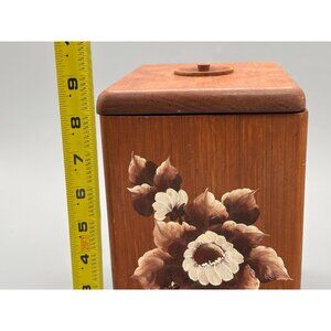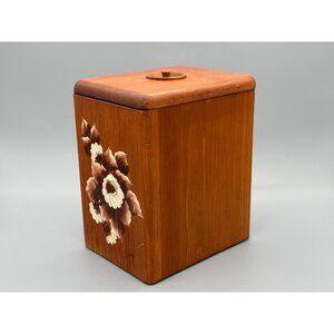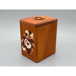 Vintage Hand Painted Wood Canister Pair With Floral Panels | Storage Containers
