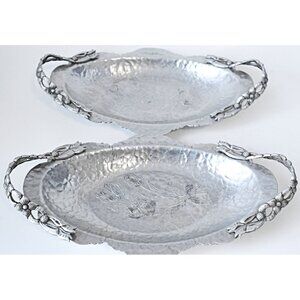 For your consideration are a pair of vintage hand wrought aluminum serving trays, produced by Rodney Kent, circa 1960's.