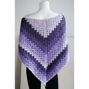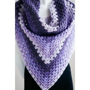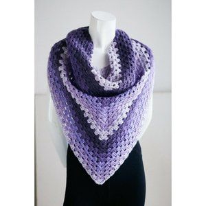 Vintage Hand knit Crochet Two Tone Lavender Purple Triangular Shawl Scarf