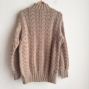 Vintage Hand made Beige Brown Chunky Knit Cardigan Zip Up M