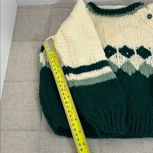 Vintage. Hand made. New. Green and Cream Knit Sweater