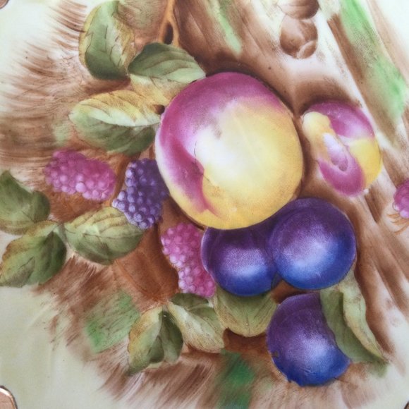 Vintage Hand painted made in occupied Japan small leaf plate handled fruits