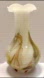 Bring a touch of artistic elegance to your décor with this beautiful vintage hand-blown art glass vase featuring flowing swirls of cream, amber, caramel, and soft yellow tones. The organic rounded base transitions into a long neck with a ruffled, flared rim, giving the piece a delicate sculptural silhouette.