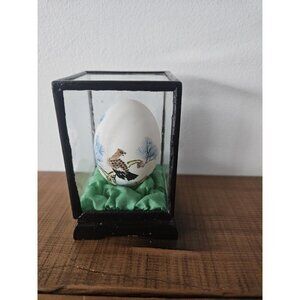 Vintage Hand-Painted Eggshell Featuring An Eagle Encased In A Glass Display