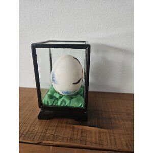Vintage Hand-Painted Eggshell Featuring An Eagle Encased In A Glass Display is a stunning collector egg. This Asian-inspired piece showcases intricate hand-painted details on a delicate glass material. The beautiful subject of an eagle adds a unique and elegant touch to any decor, making it a perfect addition to any collector's display.