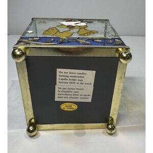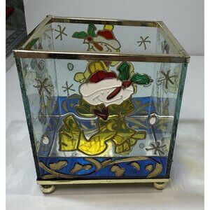 Vintage Hand-Painted Stained Glass Votive Candle Holder Christmas Snowman