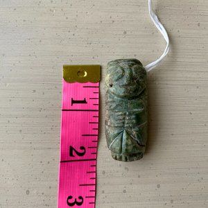 Vintage handcarved green stone talisman pendant. Comes with 22" cotton cord.