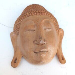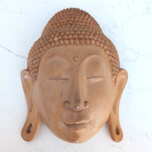 Vintage Handcarved Suar Wood Buddha Face Wall Hanging sculpture Buddhism Indonesia