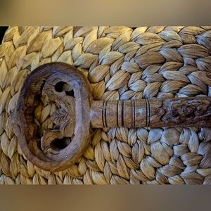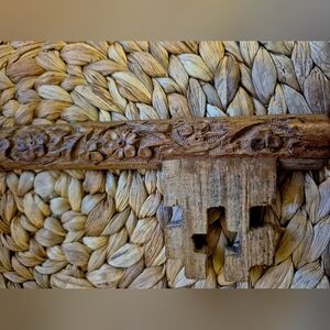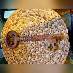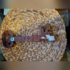 Enhance your home with this handcrafted brown wooden key wall decor. Its intricate design adds a touch of elegance to any room.