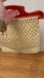This elegant handcrafted vintage crochet bag features a beautiful cream color with a sturdy brown resin handle.