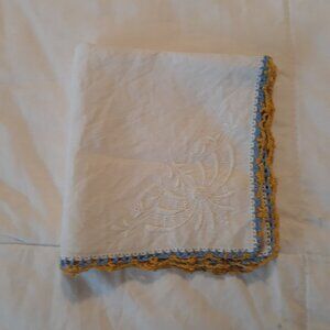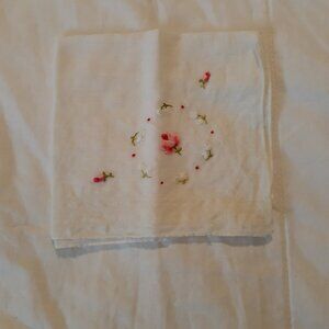 Pre-owned, but in good condition. White with various coloured detailing. Four vintage handkerchiefs with needlework and embroidery. Thin, lightweight cotton.
