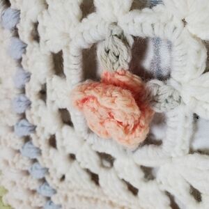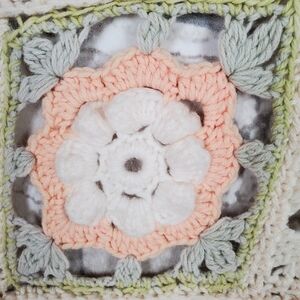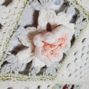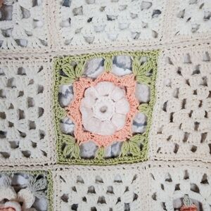 Vintage Handknit 3D Granny Square Cottagecore Lap Crib Blanket Cream Peach