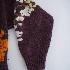 Vintage Handknit Express 30% Wool Maroon Knit Floral Mockneck Sweater M