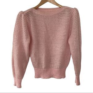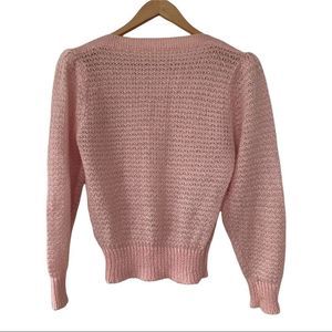 Vintage Handknit puff shoulder pink wool sweater