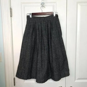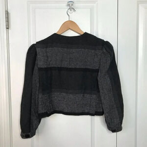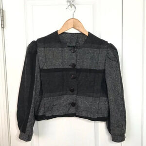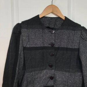 Vintage Handmade 80s Retro 2 PC Blouse & Skirt Set Black Gray Wool Blend