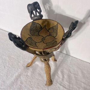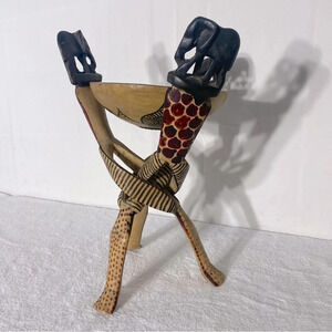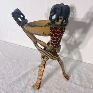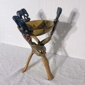 Vintage Handmade African Interlocking Interwoven Wooden Tribal Art Stand W Bowl