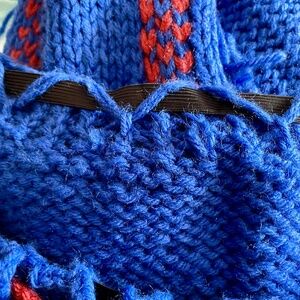 Vintage Handmade Blue and Red Fringe Knit Vest and Skirt Set