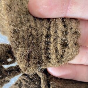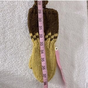 Vintage Handmade Brown Mustard Crochet Knit Winter Hat And Mitts Combo