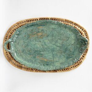 Woven rattan mat & handcrafted ceramic tray