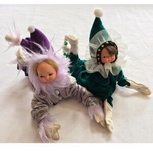 Vintage pair of collectible handmade Christmas pixie elf dolls.