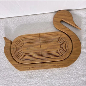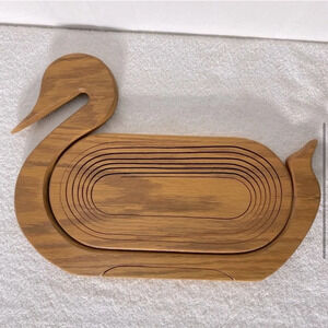 Vintage Handmade Collapsible Wood Duck Basket Bowl
