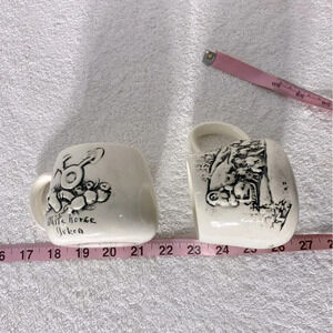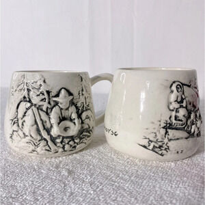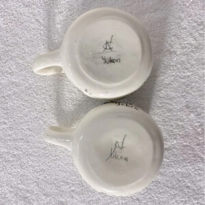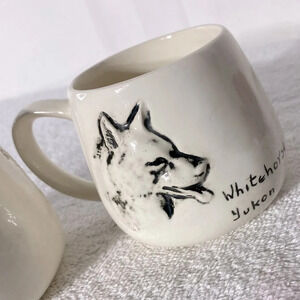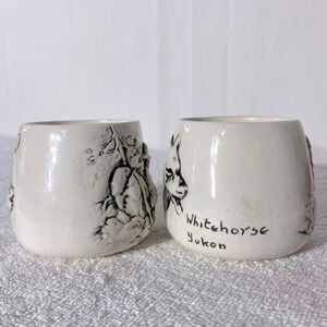 Vintage Handmade Cream Ceramic Whitehorse Yukon Mining Wolf Mugs x2