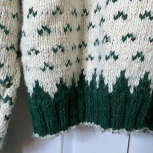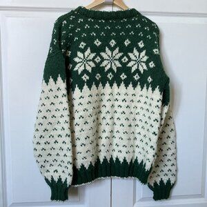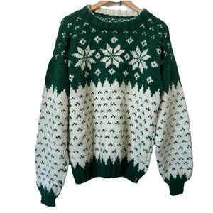 Vintage Handmade Fair Isle Nordic Sweater Pullover Green White Knit