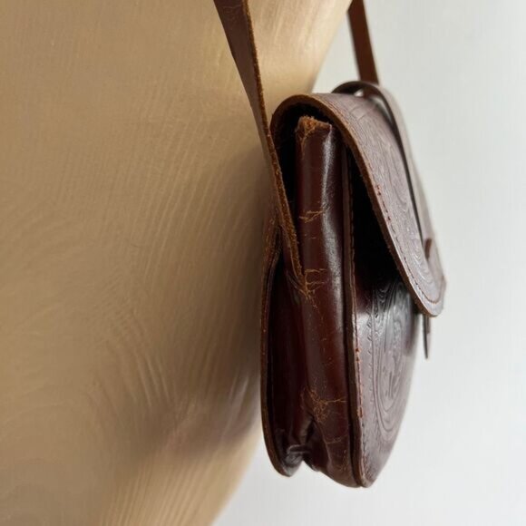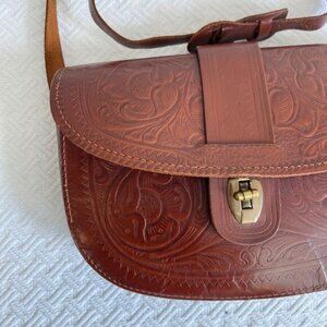 Vintage Handmade Fanco Brown Cowhide Leather Shoulder Bag Tooled Western Purse