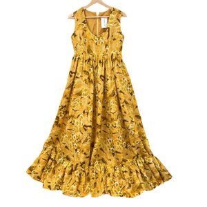 Brand: Unbranded handmade | vintage lined, polyester, no stretch, floral ruffle sleeveless maxi dress, good pre-owned and vintage condition.