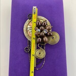 This exquisite brooch features a stunning combination of gold and brown tones, perfect for adding a touch of elegance to any outfit. Its intricate design and rich colors make it a standout accessory. It’s handmade by a local artist in Nanaimo BC.