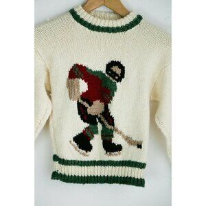 Vintage Handmade Hockey Motif Ivory Long Sleeve Pullover Boys.