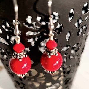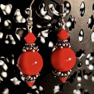 ๐๐ Vintage Handmade Indian Red Beads Dangle Silver Spacers Heavy Earrings