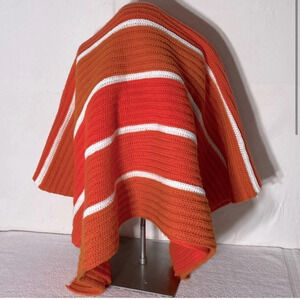 Vintage Handmade Orange Striped Crochet Knit Afghan Throw Blanket