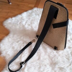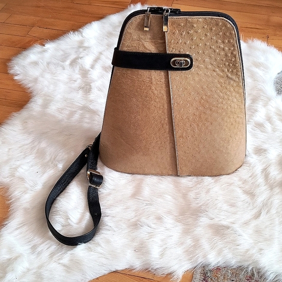 Vintage Handmade Ostrich Tan Leather Crossbody Bag.