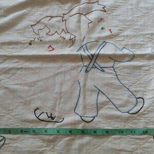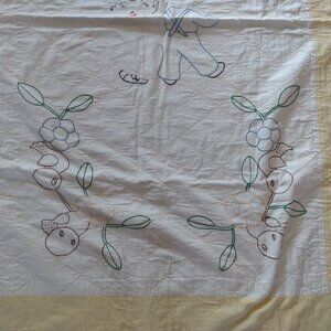 Vintage Handmade Quilt 64" by 42 1/4" Country Children Dancing Birds Embroidered
