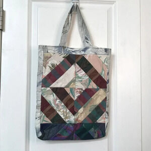 Vintage Handmade Quilted Floral Abstract Patchwork Shoulder Tote Bag