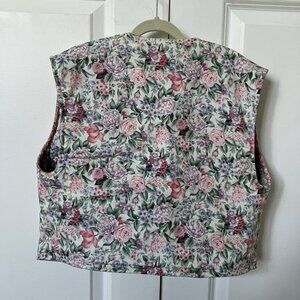 Vintage Handmade Quilted Vest Womens Cropped Floral Cottagecore Granny Prairie