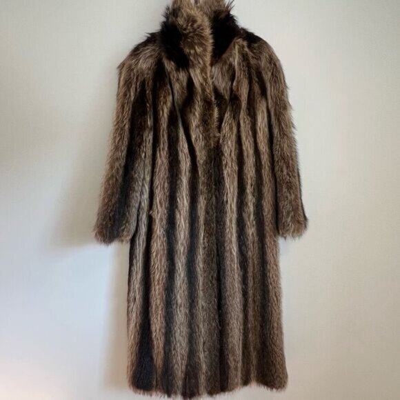 Vintage Handmade Raccoon Fur Full Length Jacket Overcoat Women’s Small Brown