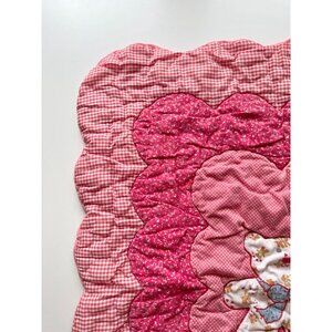 Vintage Handmade Red Gingham Floral Teddy Bear Cotton Voile Quilt Baby Blanket