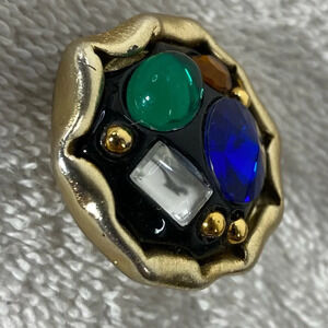 Vintage Handmade Round Plastic Bejewelled Clip On Earrings