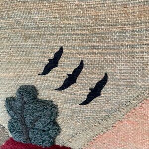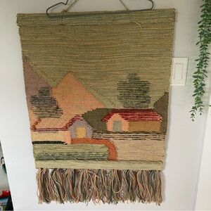 Vintage Handmade Rustic Boho Charming Village Scene Tapestry with Fringe