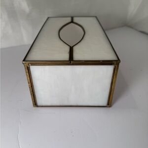 Vintage Handmade Stained Glass White Tissue Box Holder Cover Rectangle
