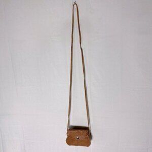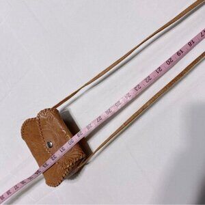 Vintage Handmade Tan Brown Tooled Leather Crossbody Bag Shoulder Bag Purse