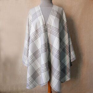 Vintage Handmade Taupe & Cream Plaid Wool Cape