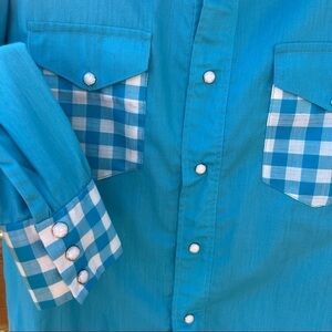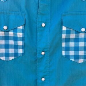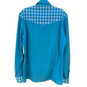 Vintage Handmade Western Gingham Pearl Snap Button Down Shirt Size Large