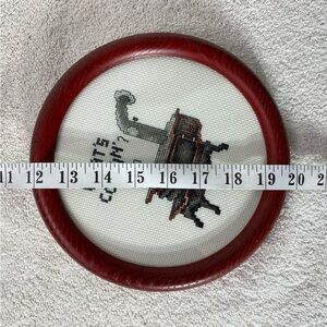 Vintage Handmade “What’s Cooking” Cross Stitch Wall Art W Round Red Brown Frame